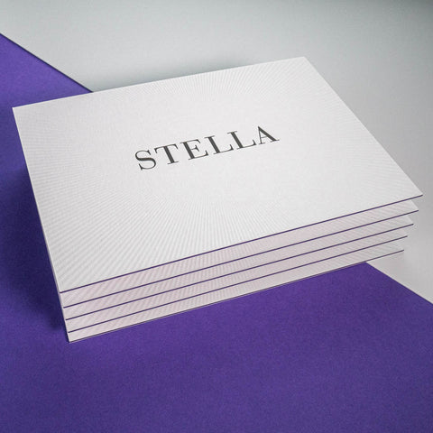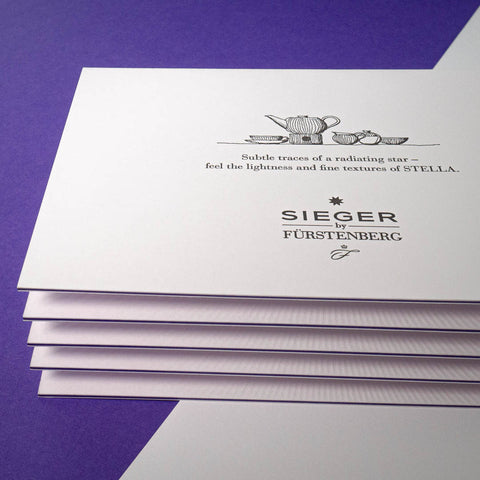 Druck: 2/1-farbig Prägung farblos + Letterpress Schwarz / Letterpress Schwarz